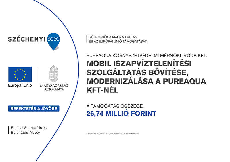 - A Projekt címe: Mobil iszapvíztelenítési szolgáltatás bővítése, modernizálása a PureAqua Kft-nél